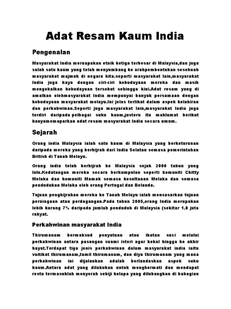 Adat Resam Dan Kebudayaan Kaum India Pdf